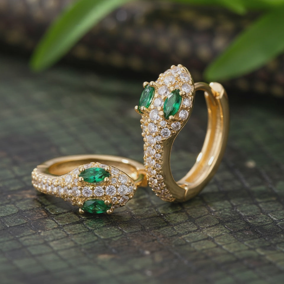 These are Eden hues at their most elevated: emerald tones against molten gold or cool silver, striking yet restrained. Plated in 18K gold, the Eden Huggies are hypoallergenic, and can be worn comfortably from day to night.